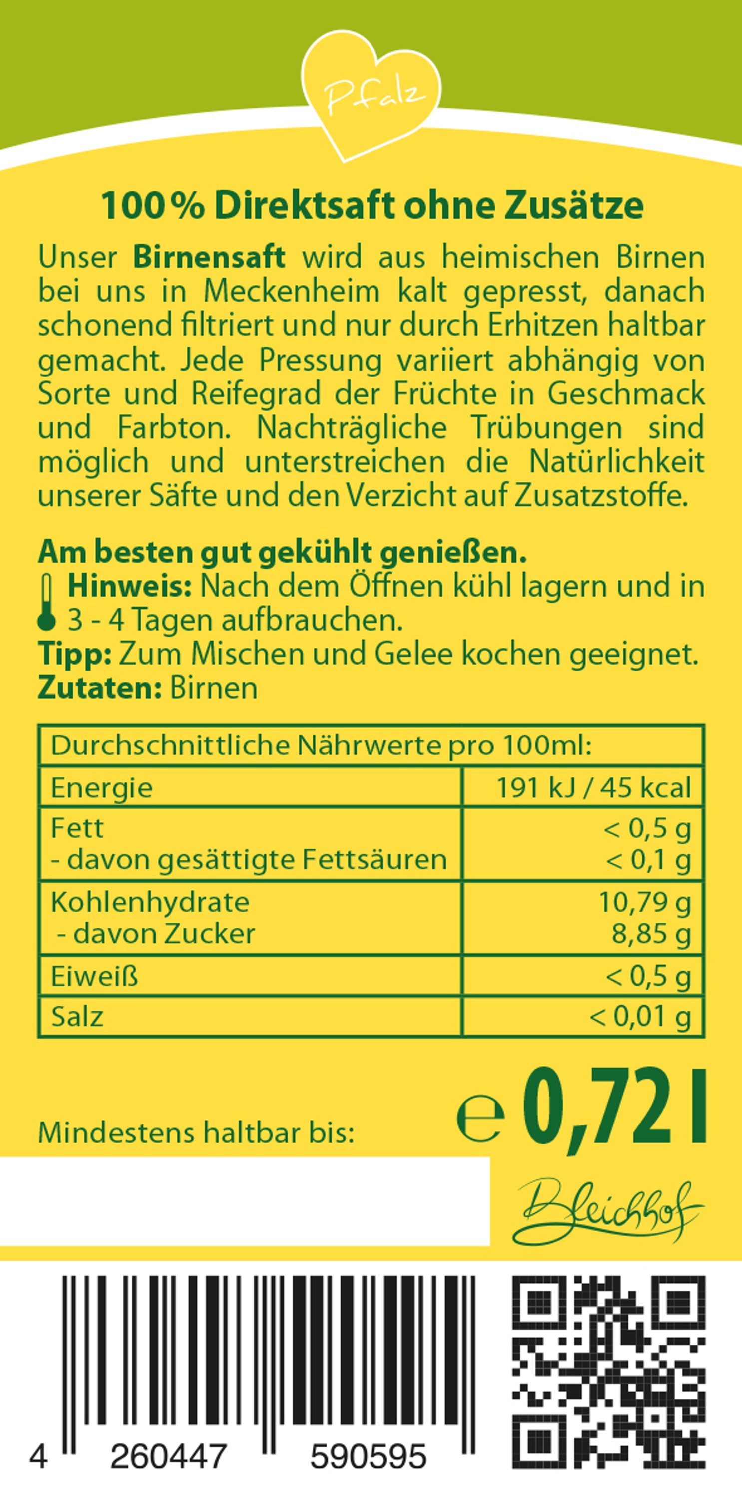 BLEICHHOF® Birnensaft Direktsaft, vegan (1x0,72l)