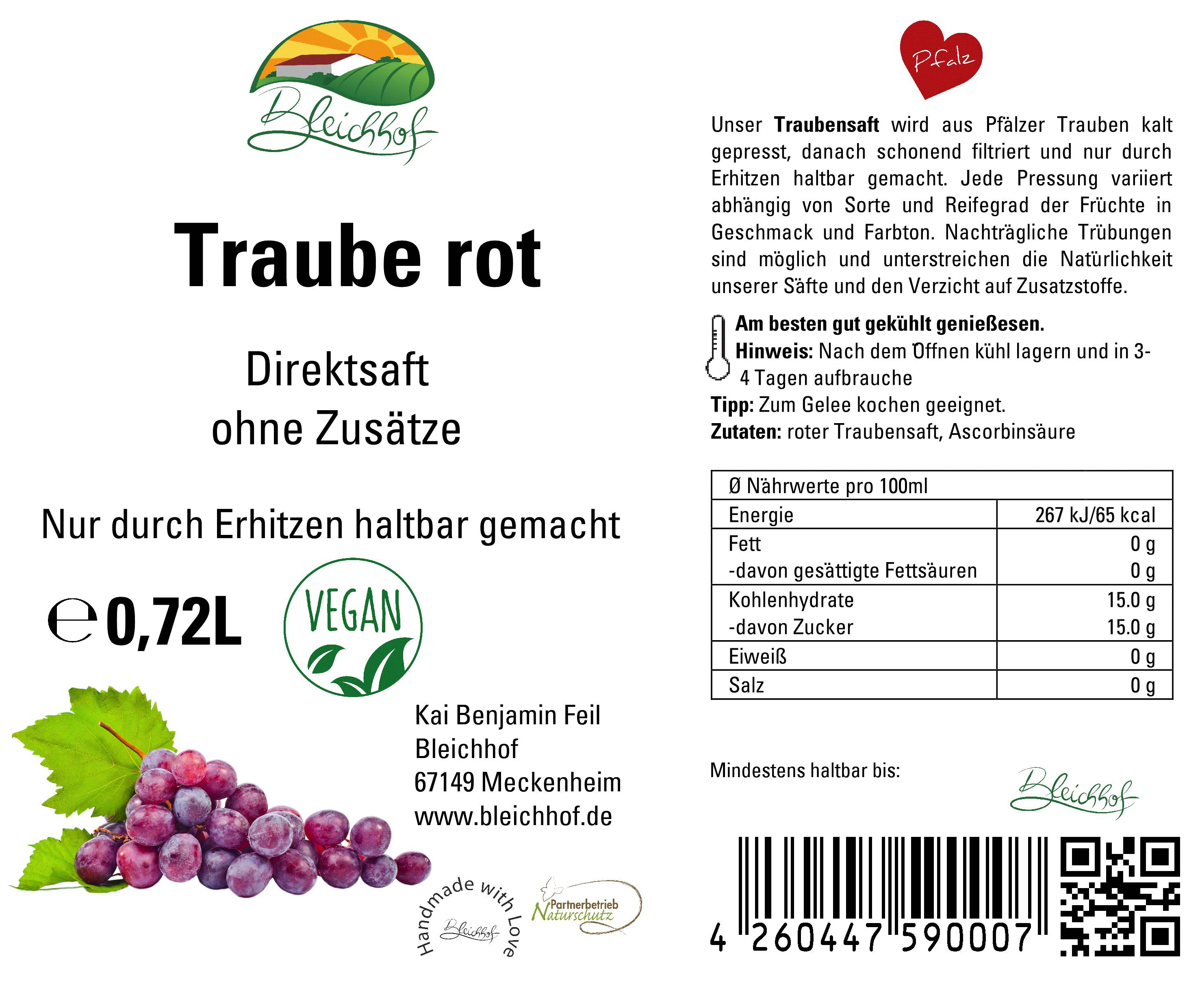 BLEICHHOF® Traubensaft (rot) - Direktsaft, vegan (1x0,72l)