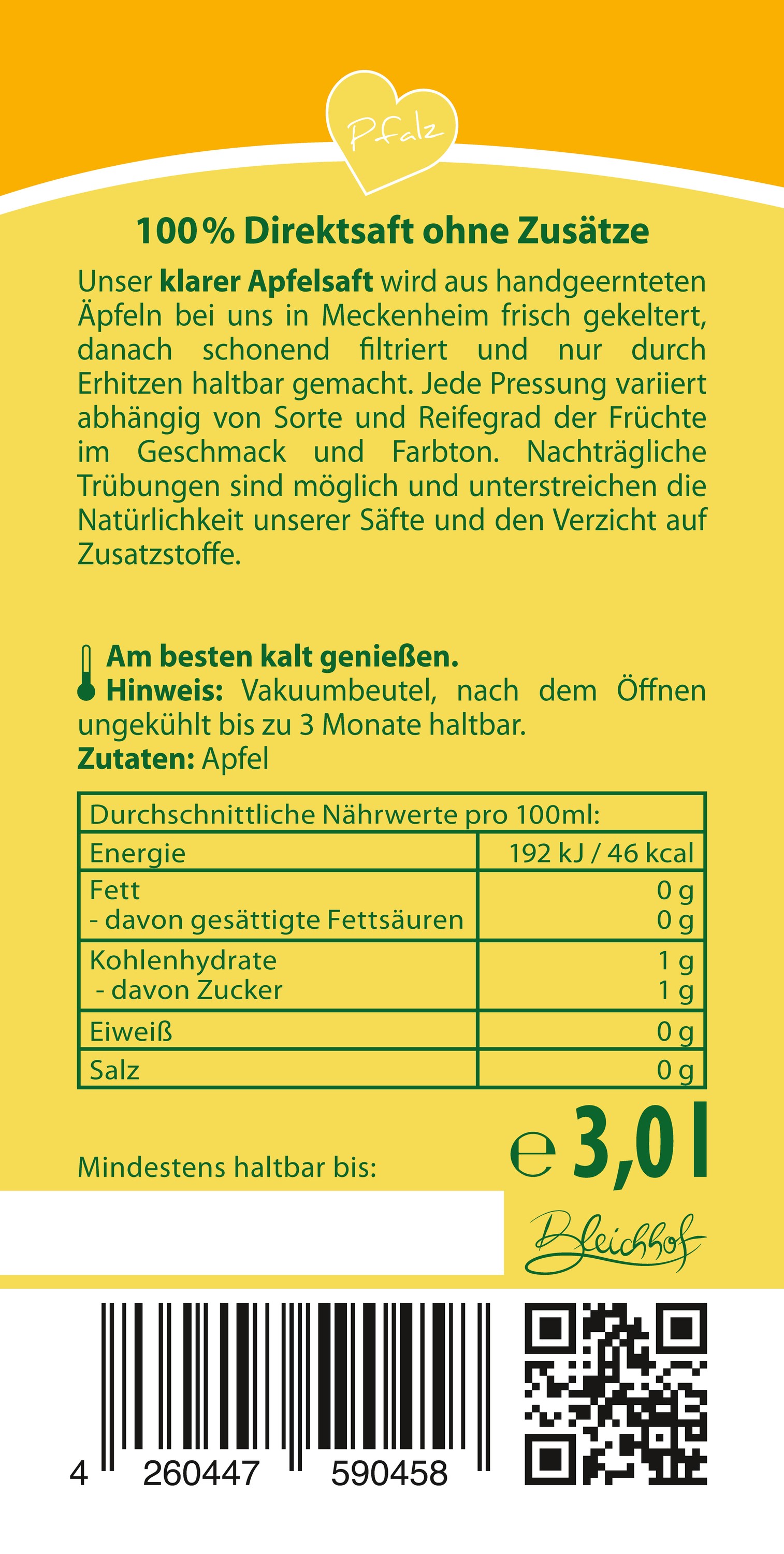BLEICHHOF® apple juice clear - direct juice, vegan, bag-in-box (2x3l)