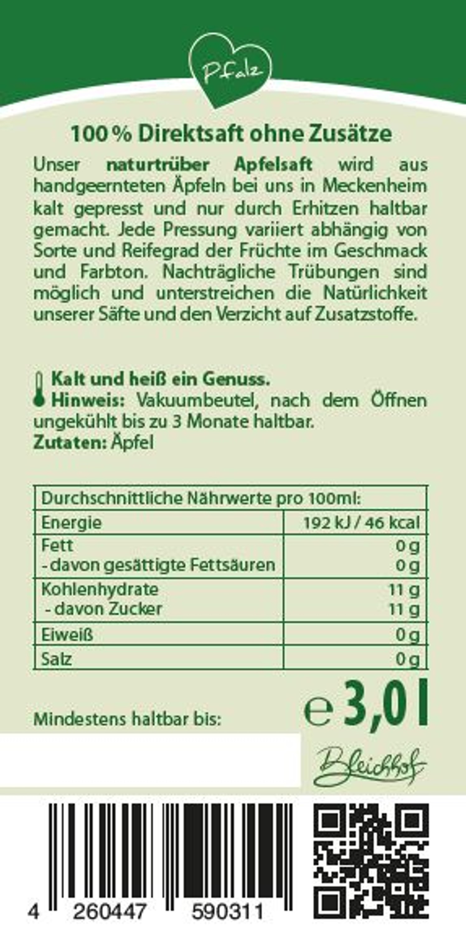 BLEICHHOF® apple juice naturally cloudy - direct juice, vegan, bag-in-box (2x3l)