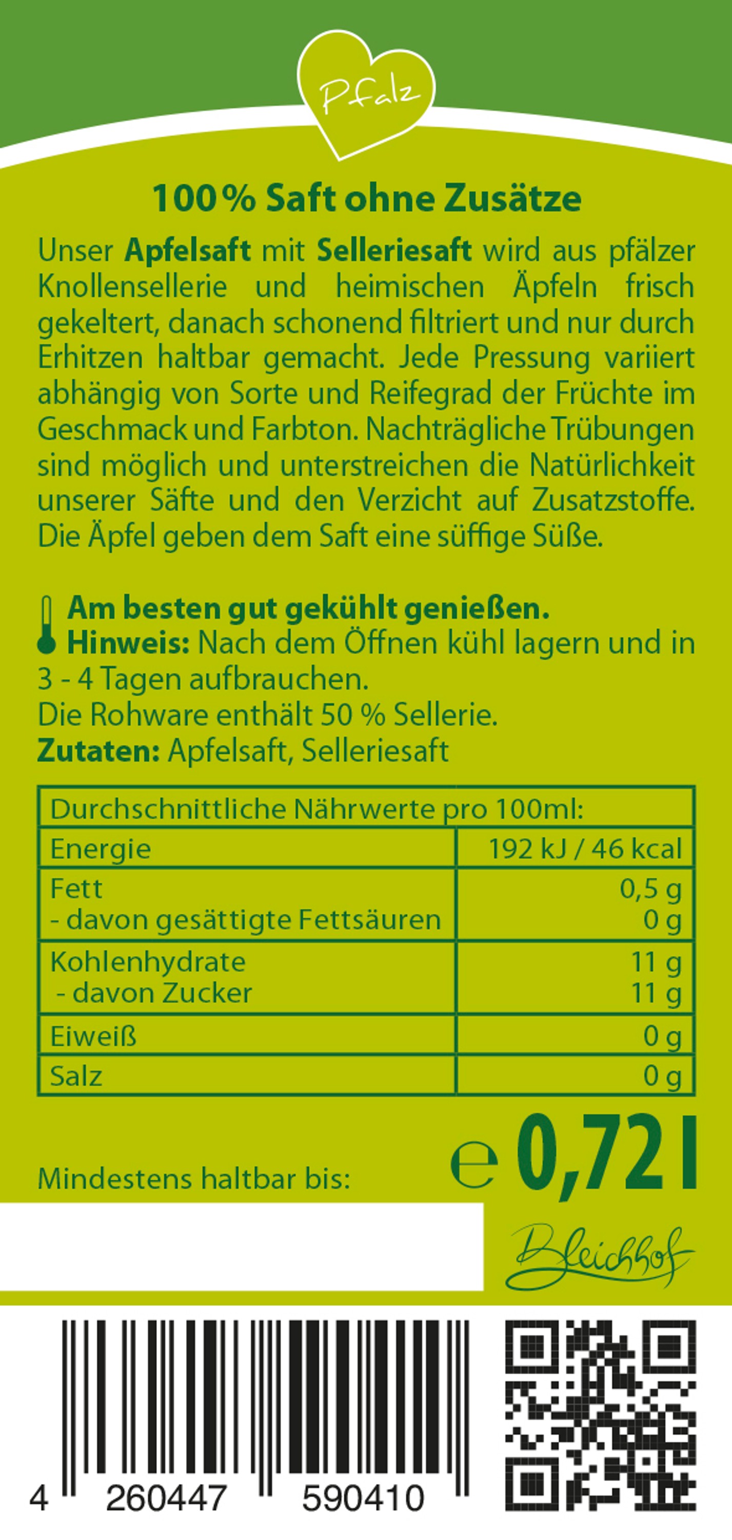 BLEICHHOF® apple mixed juices with vegetables - 2x apple juice with ginger juice 0.72L, 2x apple juice with beet juice 0.72L, 2x apple juice with celery juice 0.72L (6x0.72L)