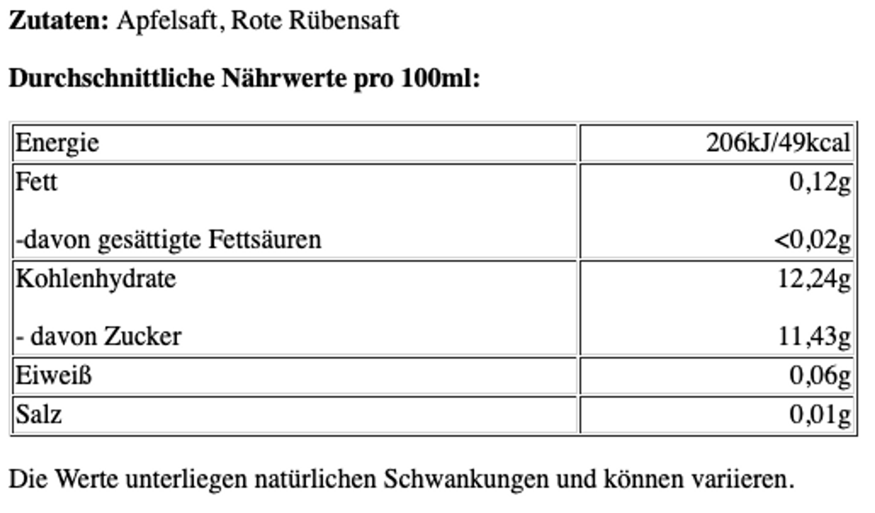 The fresh and tart experience is achieved without the addition of ascorbic acid. Our juices are preserved only by heating - just the best from nature for the best juice.