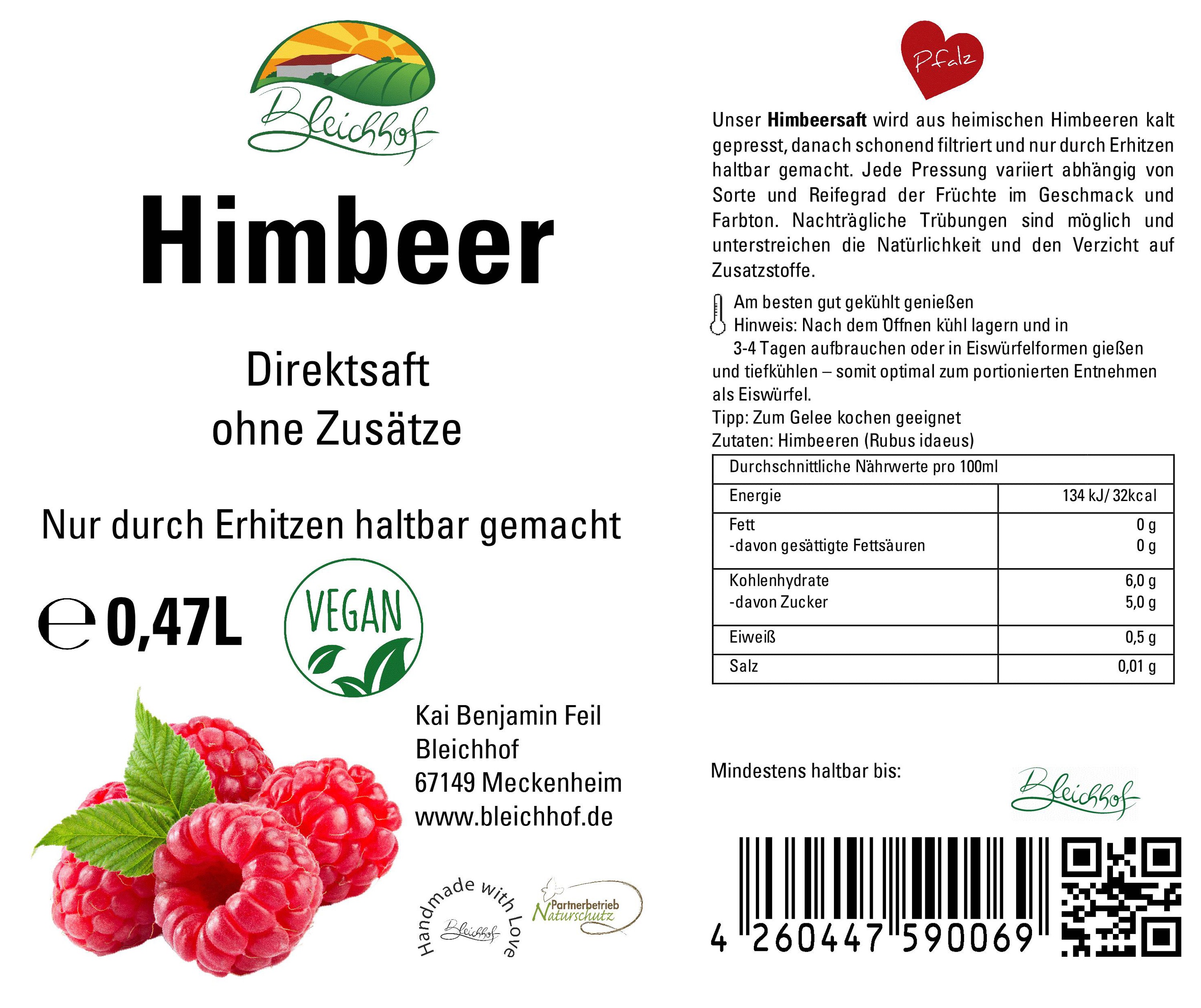 BLEICHHOF® raspberry juice - direct juice, vegan (8x0.47l)