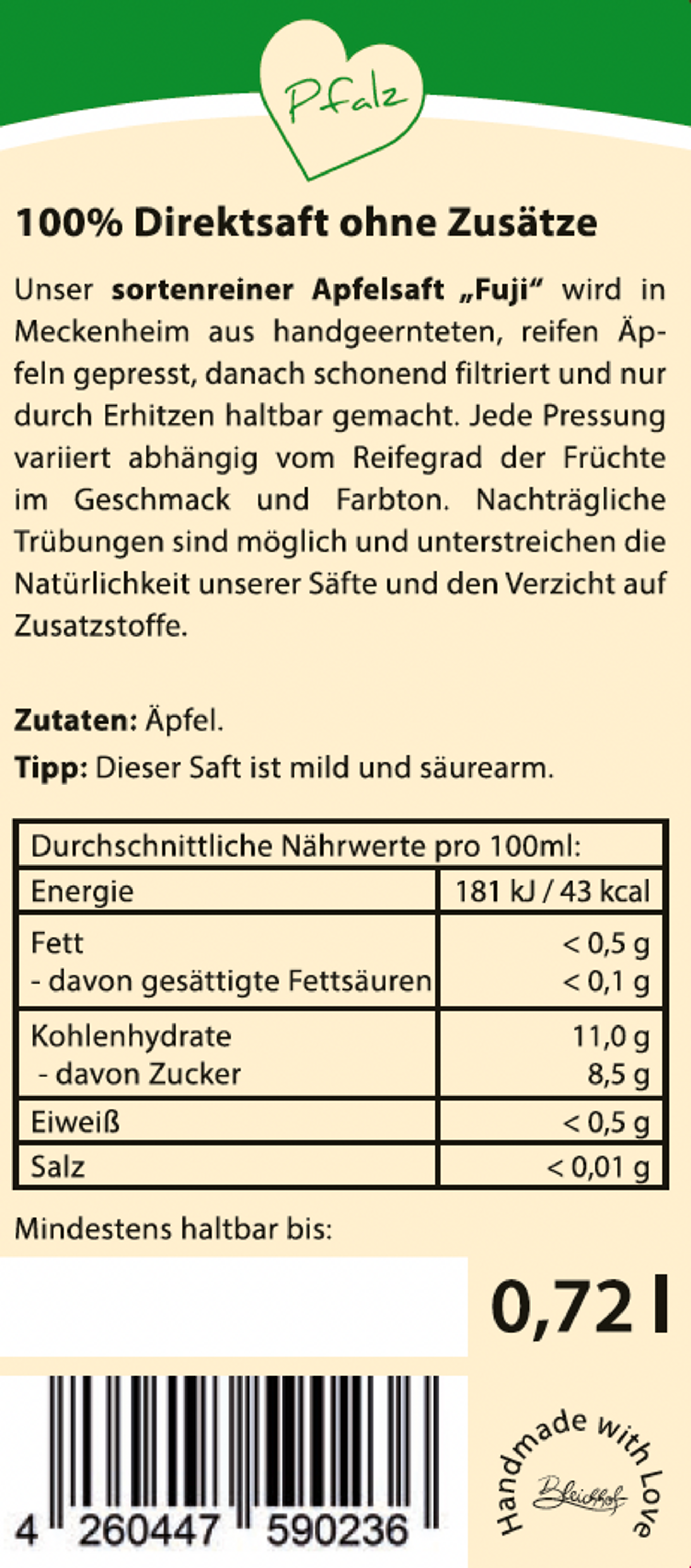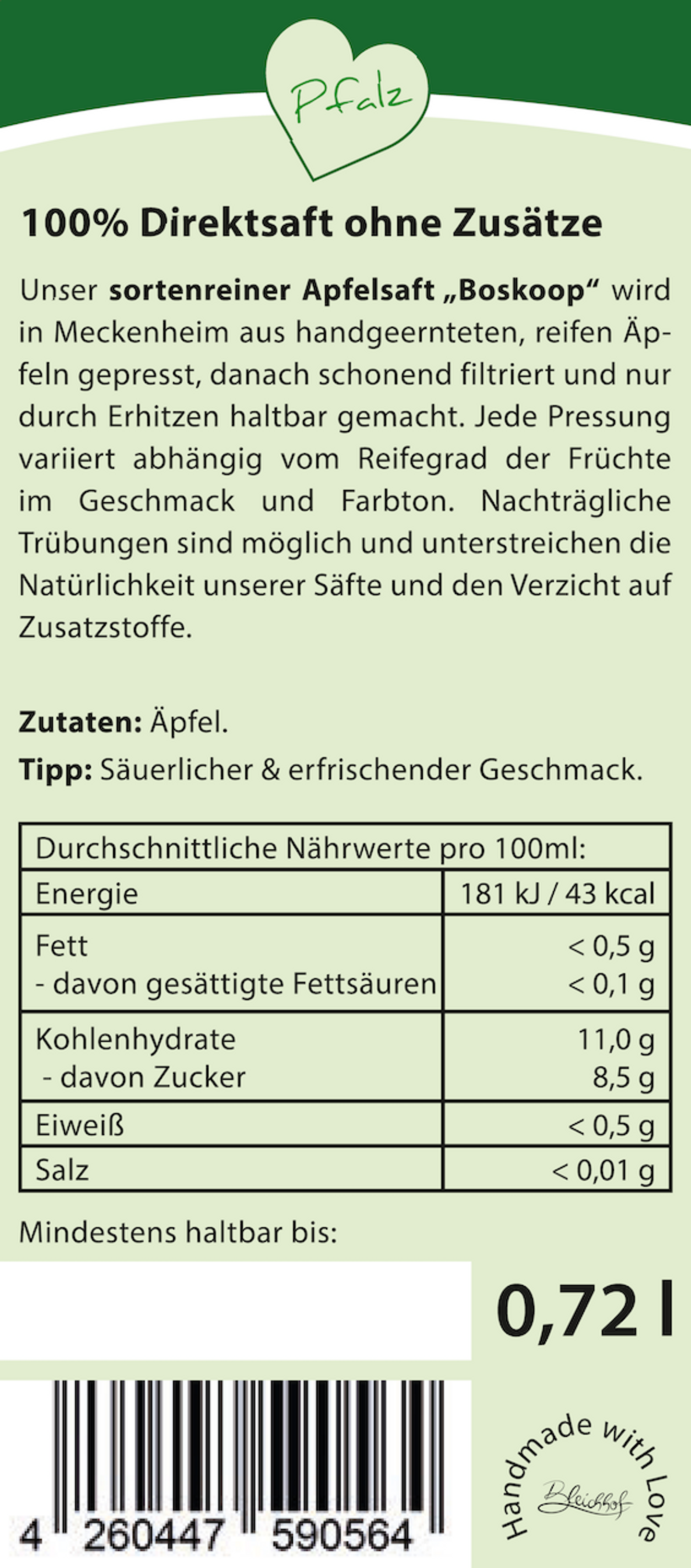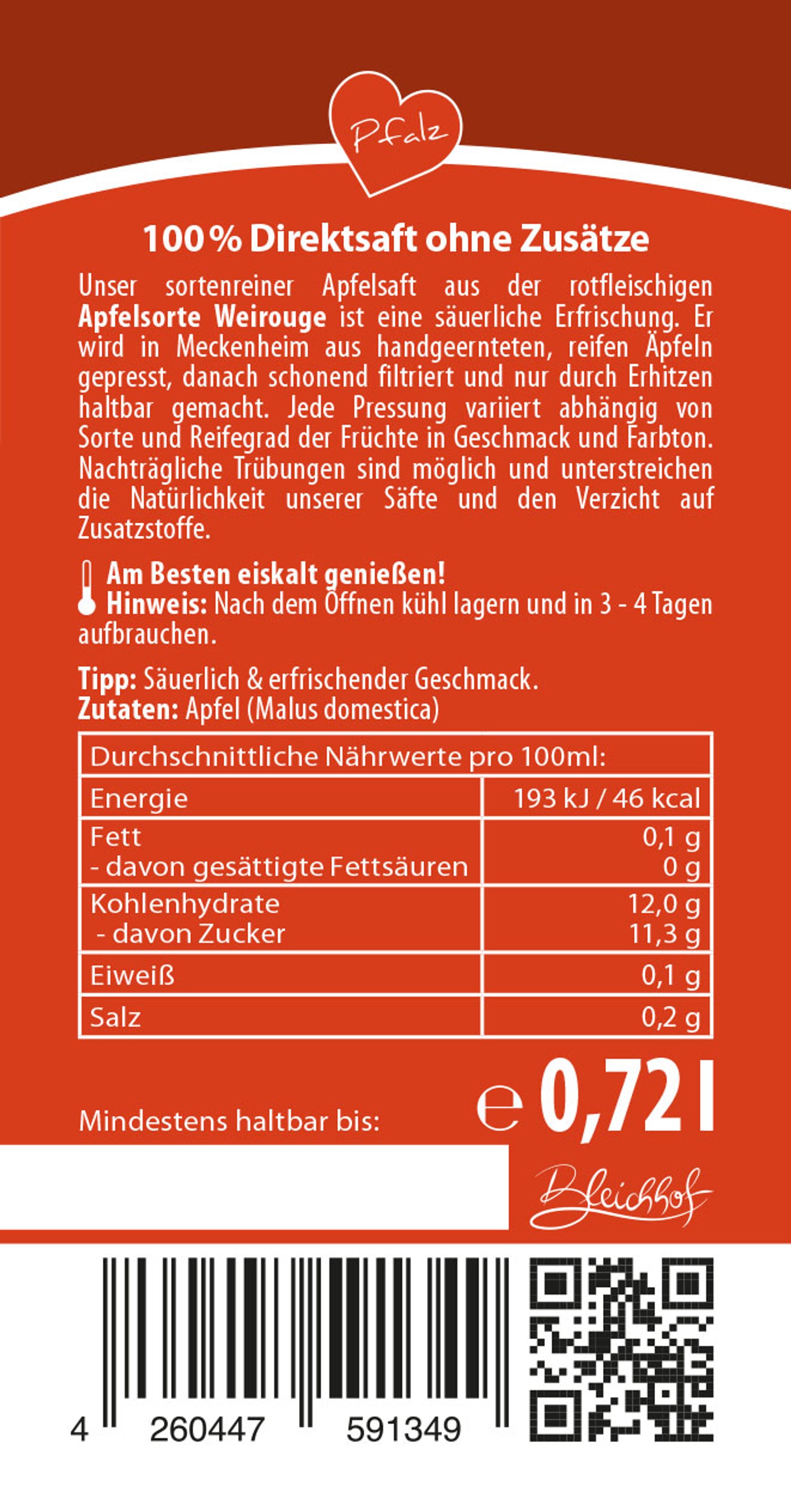 Bleichhof varietal apple juices - 2x Weirouge 0,72L, Boskoop 0,72L, Rubinette 0,72L, Melrose 0,72L, Fuji 0,72L (6x 0,72L)