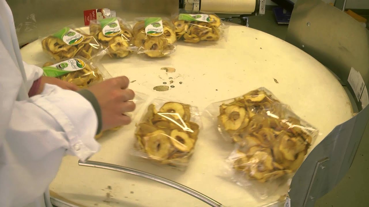 Nach einer telefonischen Terminabsprache liefern Sie Ihre Äpfel an. Wir trocknen und verpacken die Chips in 45g, 90g oder 180g Päckchen. Auf Wunsch ist das Bestreuen mit Zimt oder Chili sowie das Aufbringen eines von Ihnen gelieferten Selbstklebeetiketts möglich. Wir trocknen auch Birnen, Pflaumen und Erdbeeren. Andere Früchte / Gemüse auf Anfrage.