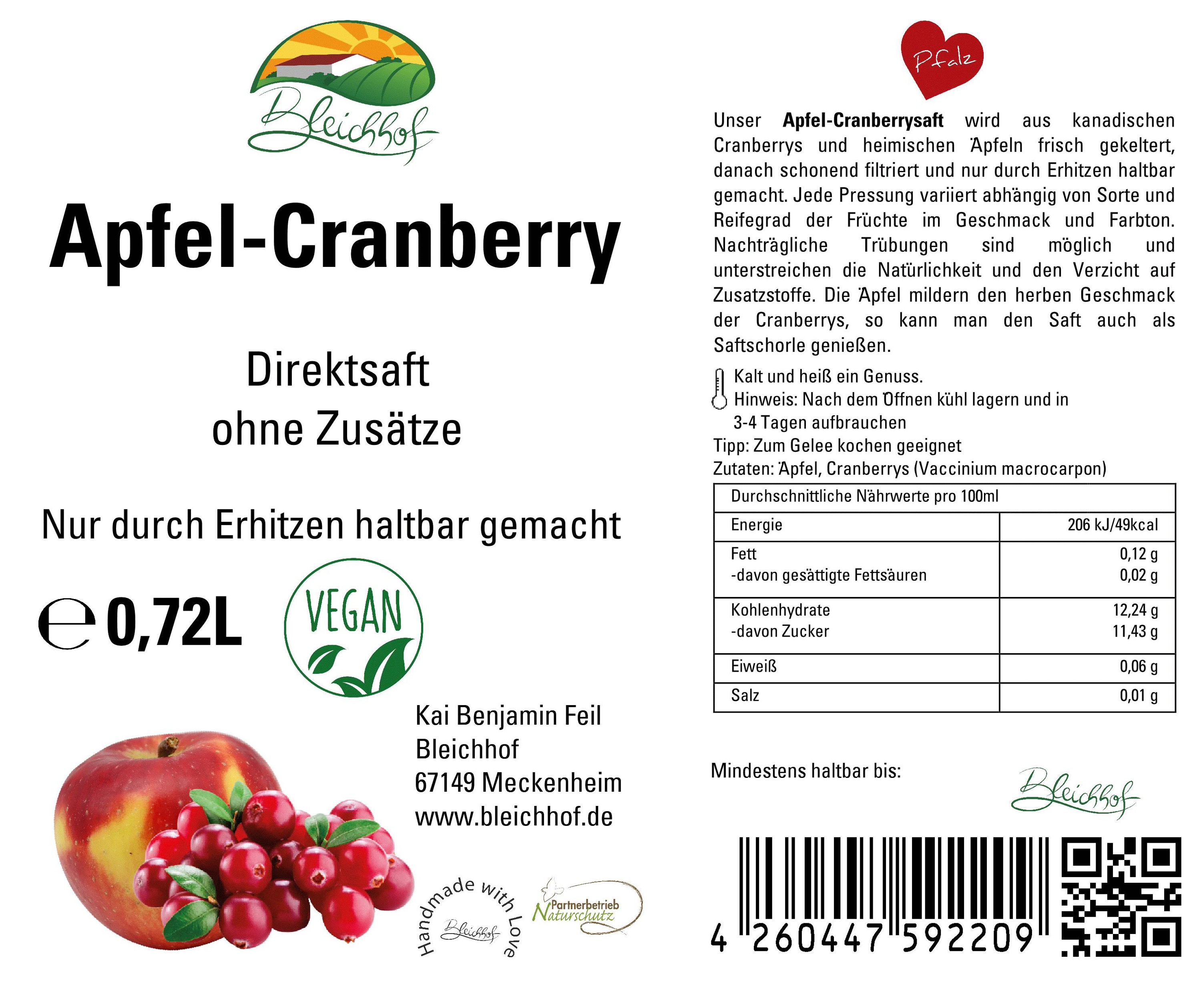 BLEICHHOF® Apfel-Cranberry - Direktsaft, vegan (6x0,72l)