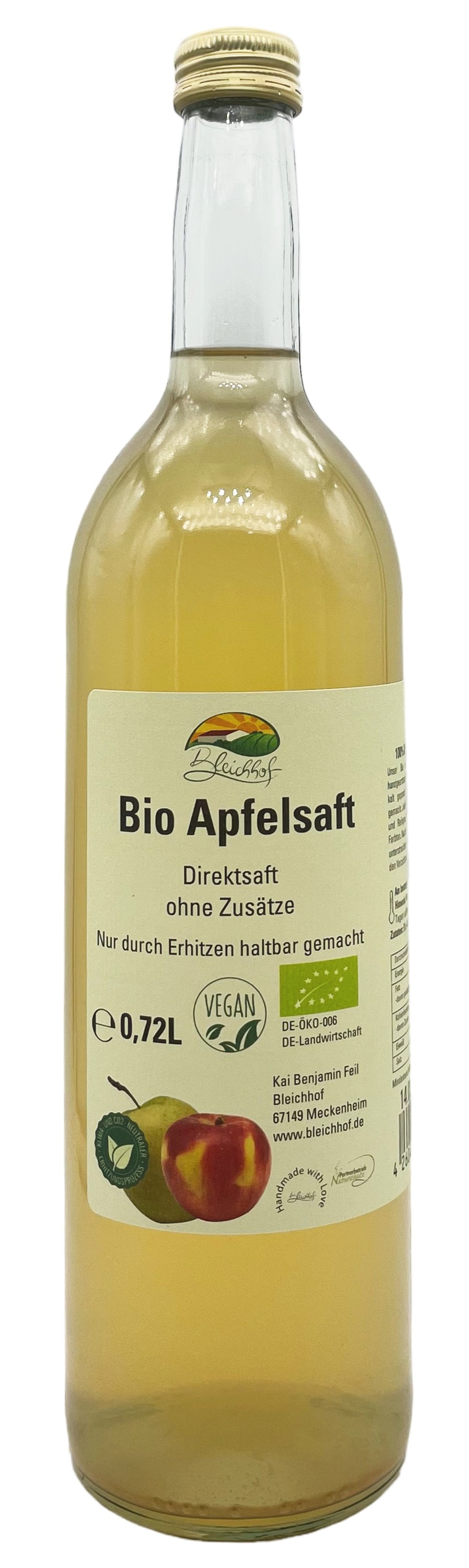 BLEICHHOF® Bio Apfelsaft DE-ÖKO-006 - Direktsaft, vegan (6x0,72l)