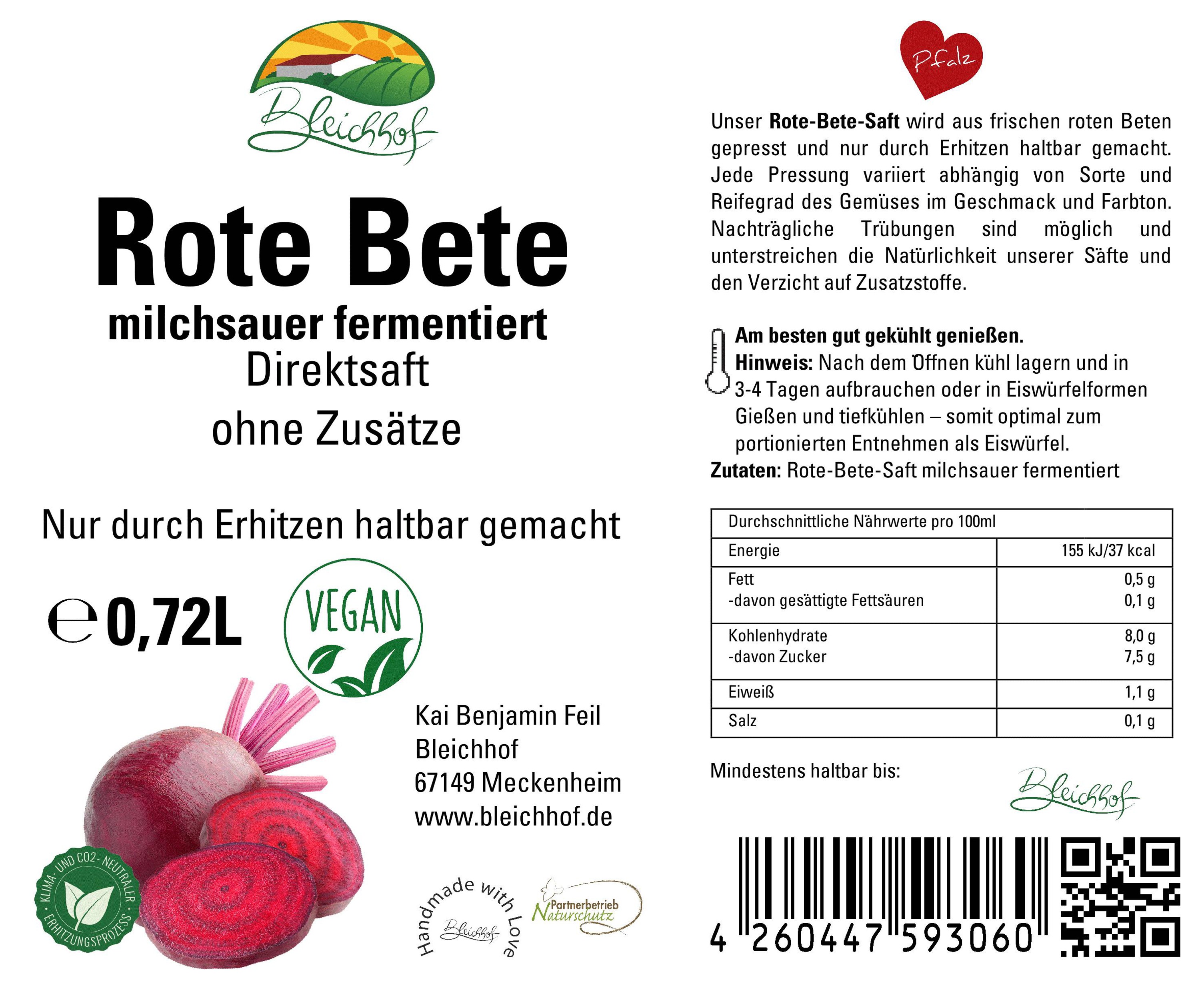 Bleichhof® Rote-Bete-Saft - Direktsaft, milchsauer fermentiert, vegan (6x0,72l)