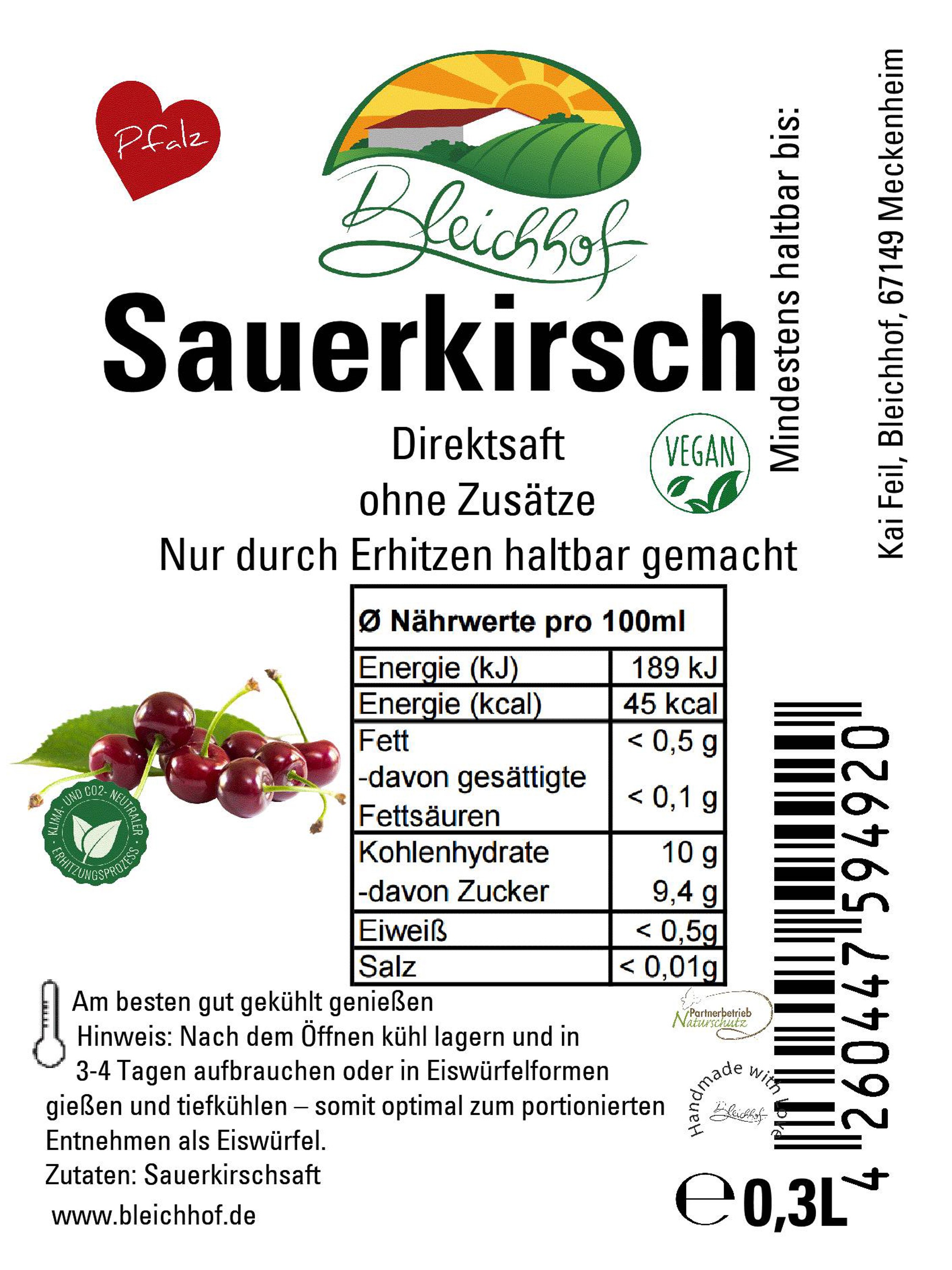 BLEICHHOF® Sauerkirschsaft - Direktsaft, vegan (6x0,3l)