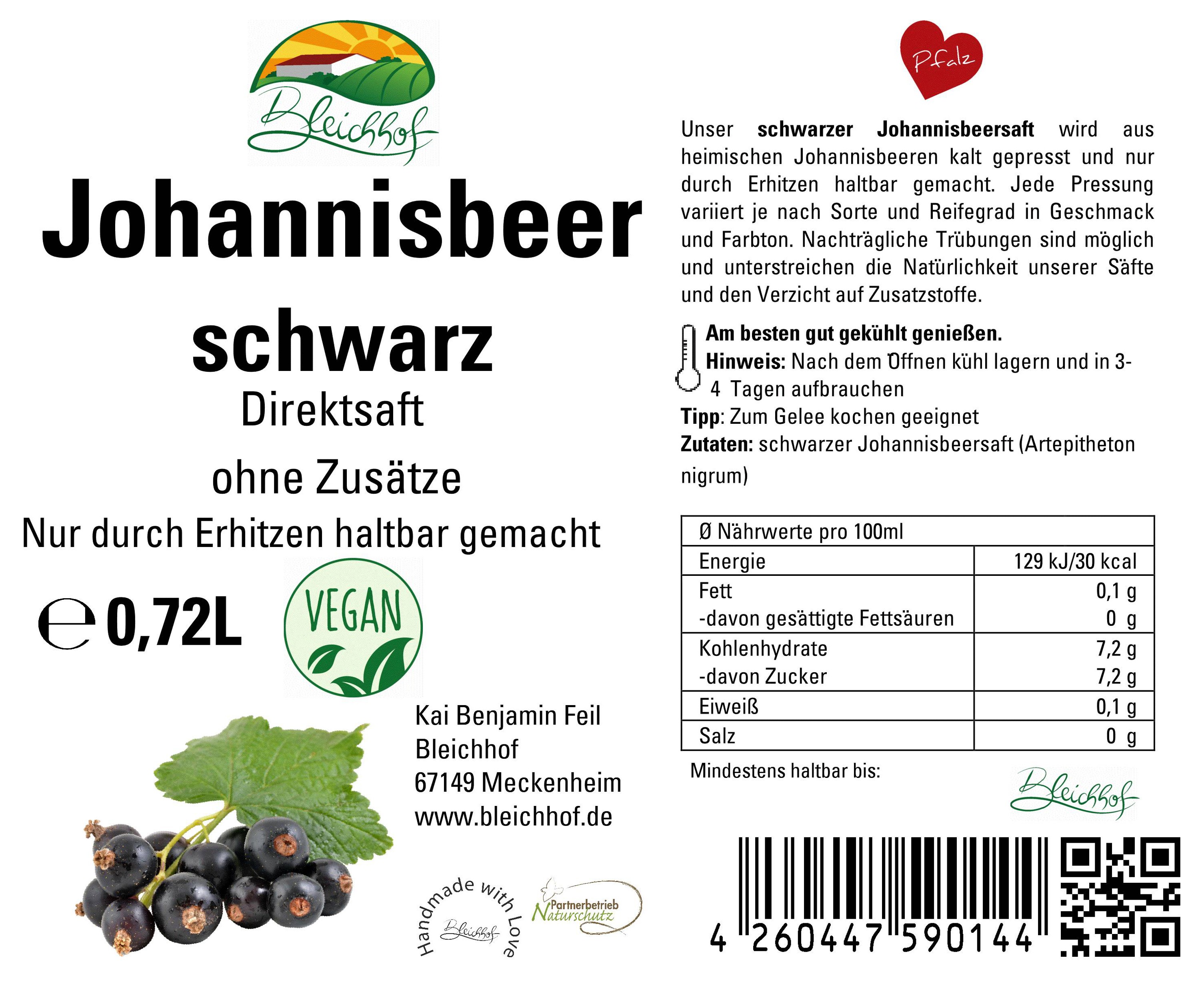BLEICHHOF® Schwarzer Johannisbeersaft - Direktsaft, vegan (3x0,72l)