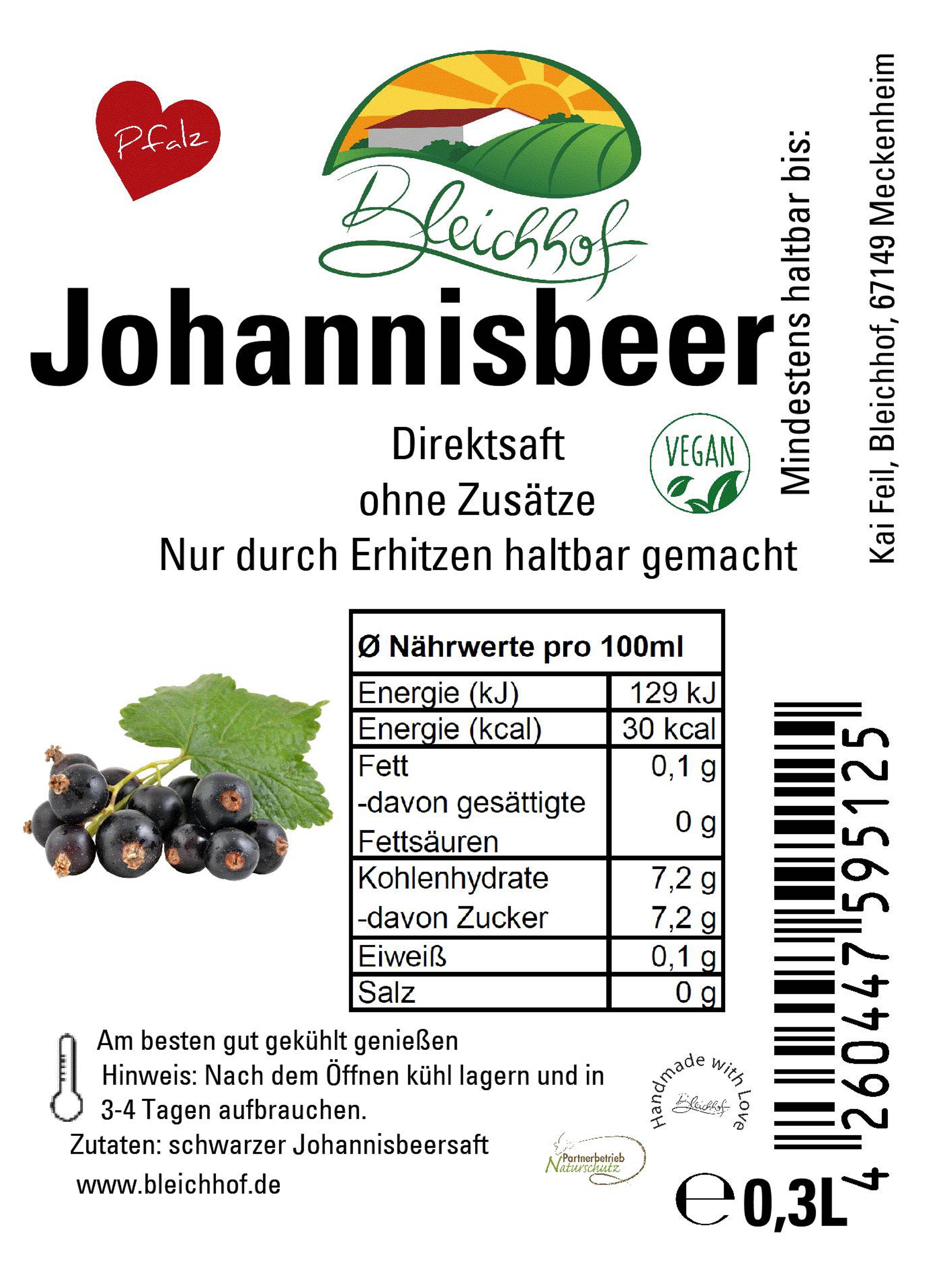 BLEICHHOF® Schwarzer Johannisbeersaft - Direktsaft, vegan (6x0,3l)